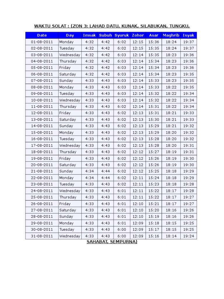 Jadual Waktu Solat Bagi Negeri Sarawak Tahun Pdf